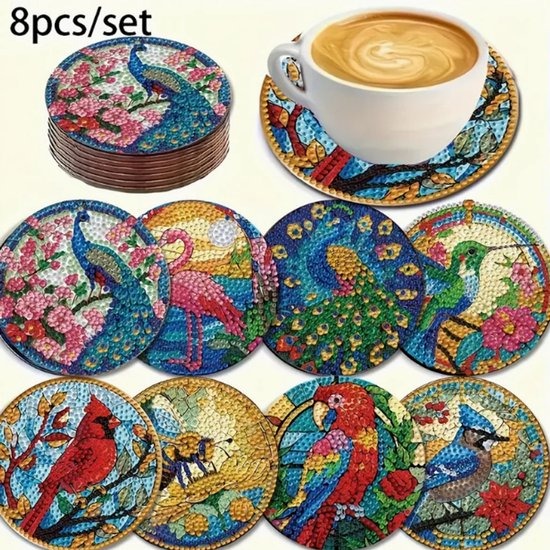 Set Van 8 Diamantschilderij Onderzetters Met Houder.