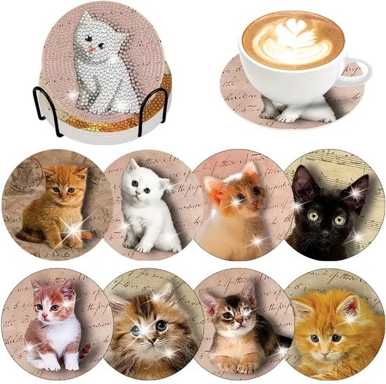 Diamond painting - onderzetters 8 stuks - Poesjes