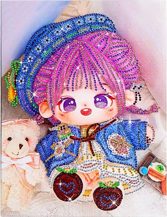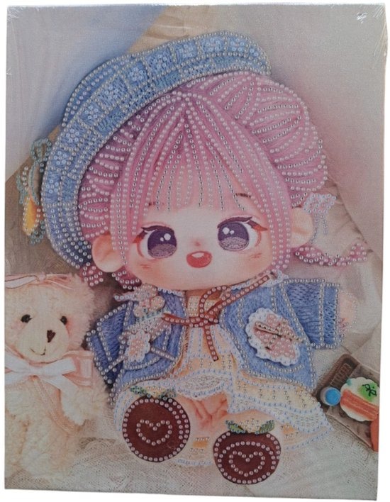 Diamond Painting op Houten Frame - Pop en Teddybeer - 30x23 cm