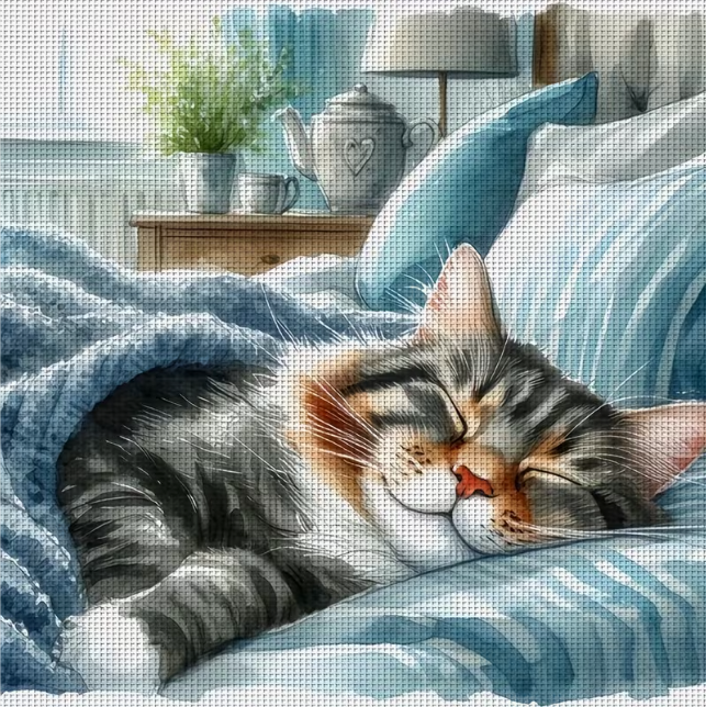 Gedrukte kruissteek DIY-kit Poesjes, geschikt voor ontspannende kruissteeksets 11CT voor volwassen beginners, inclusief bedrukt canvas, naalden, garen, tekeningen en instructies.