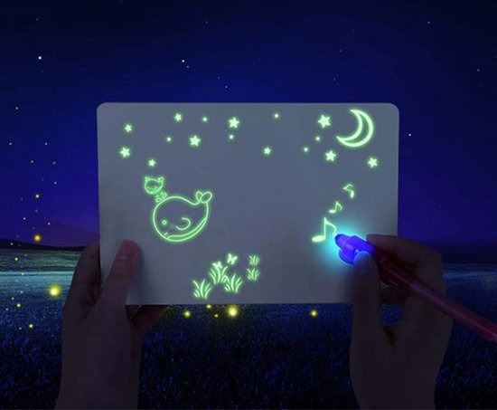 Laat nu tekeningen tot leven komen dankzij dit Glow In The Dark tekenbord van iBello. Het lichtgevende glow in the dark tekenbord is een fantastisch entertainment in het donker en biedt een zeer unieke tekenervaring voor jong en oud.