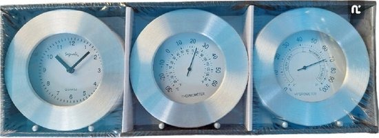 Set bestaande uit klok, hygrometer en thermometer van RVS.