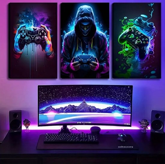 3-delige Retro Gaming Canvas Kunstset